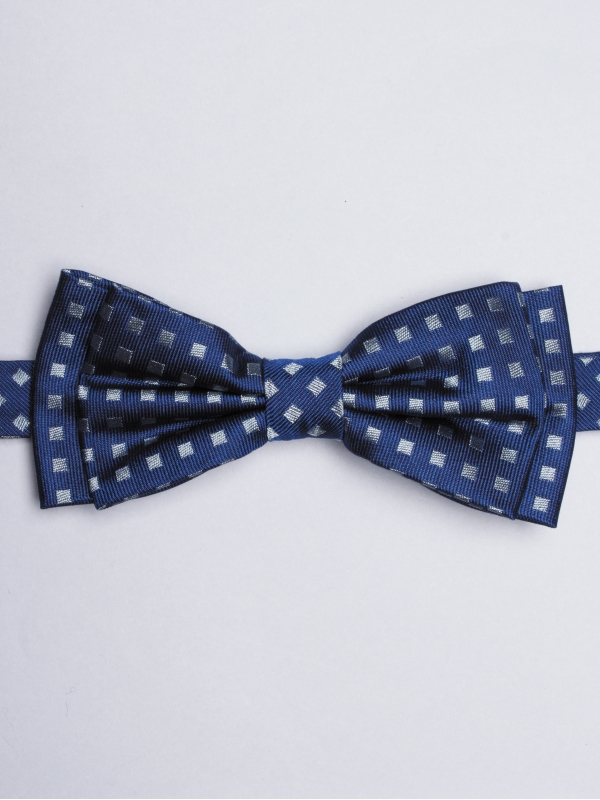 Elegance is honoured on this blue bow tie with square patterns. Be sure, it will complete your outfit to perfection.