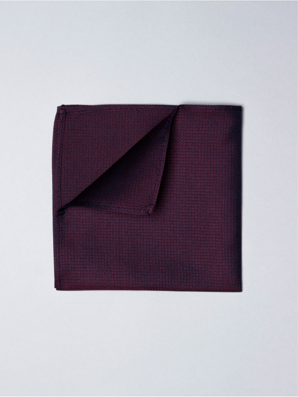 Finish your outfit with this midnight blue silk pocket. The red little woven crosses that mark the fabric will give a modern touch to your dark blazers.