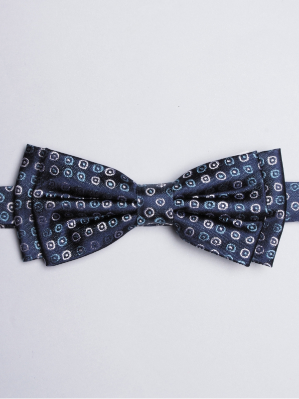 Here is an elegant, navy blue bow tie covered in little blue and white circles. Its will coordiante equally with light or dark outfits.