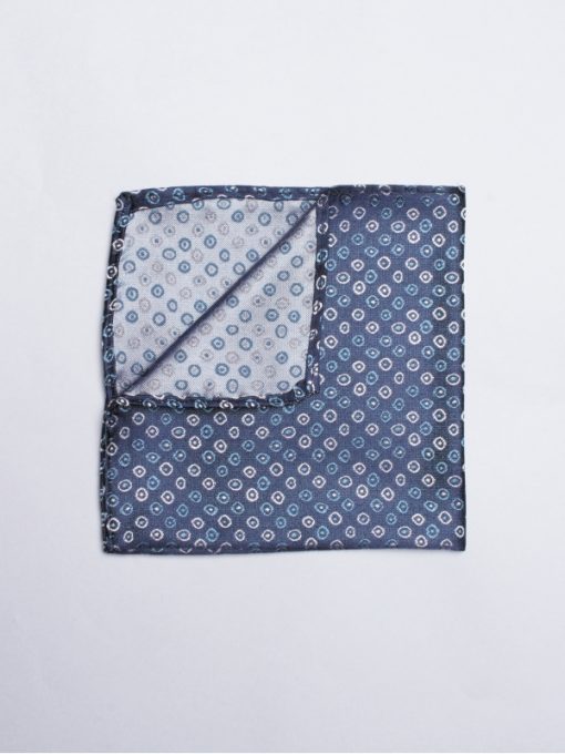 Do you wish to add a touch of style to your outfit? This navy blue pocket square with circle patterns will harmonise just as well with light hues as with dark.