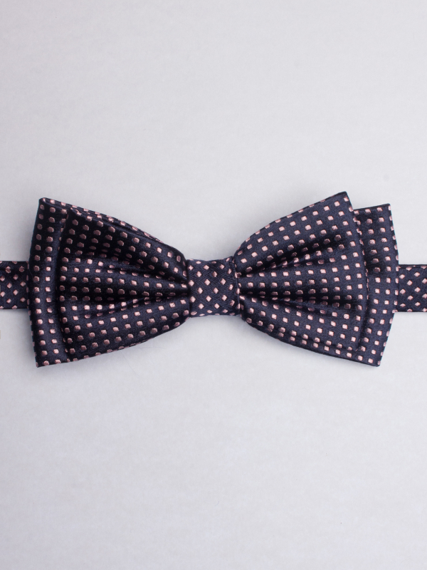 To try this bow tie and adopt it! This midnight blue accessory will elegantly pair with grey jeans, a white shirt and a midnight blue jacket. Its pink square pattern add something more to your outfit.