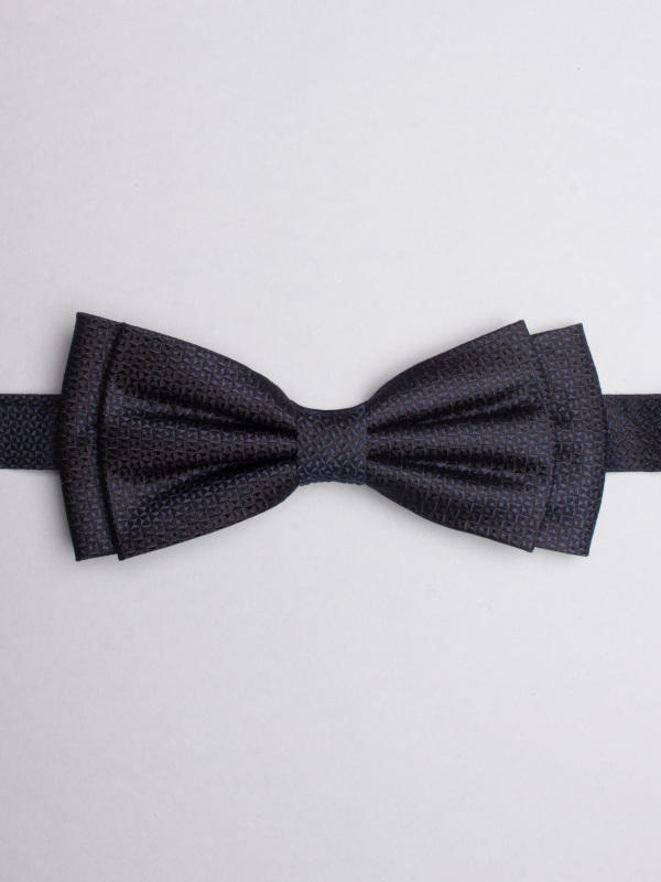 This bow tie mixing night blue and black will be perfect with a dark suit. Its triangular patterns bring texture and relief to this accessory, in other words some elegance.