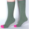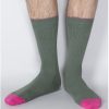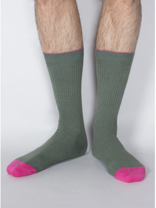 Break up those lonotonous outfits with these solid green socks! The extreme pink and pistachio detailing bring an added layer of originality to this soft pair, which can easily be matched with an assortment of burgundy or gray pants. 80% cotton / 18% polyamide / 2% elastane.