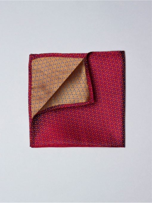 Be irresistibly dressed, complementing your outfits with this red silk pocket square decorated with micro blue and yellow star designs. It will enhance your gray or anthracite suits for a sparkling and elegant result.