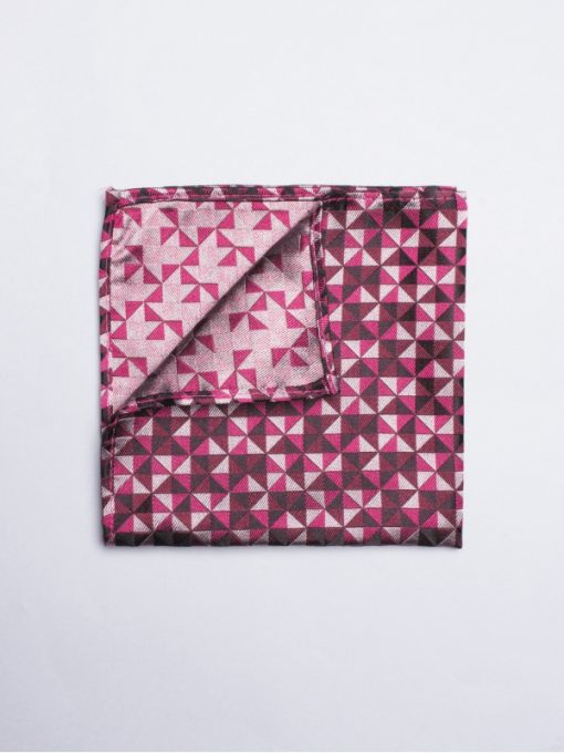 If you like bright colours and geometric shapes, this pocket square is made for you. With its raspberry pink tones and triangle patterns, it will brighten your black jackets for sure.