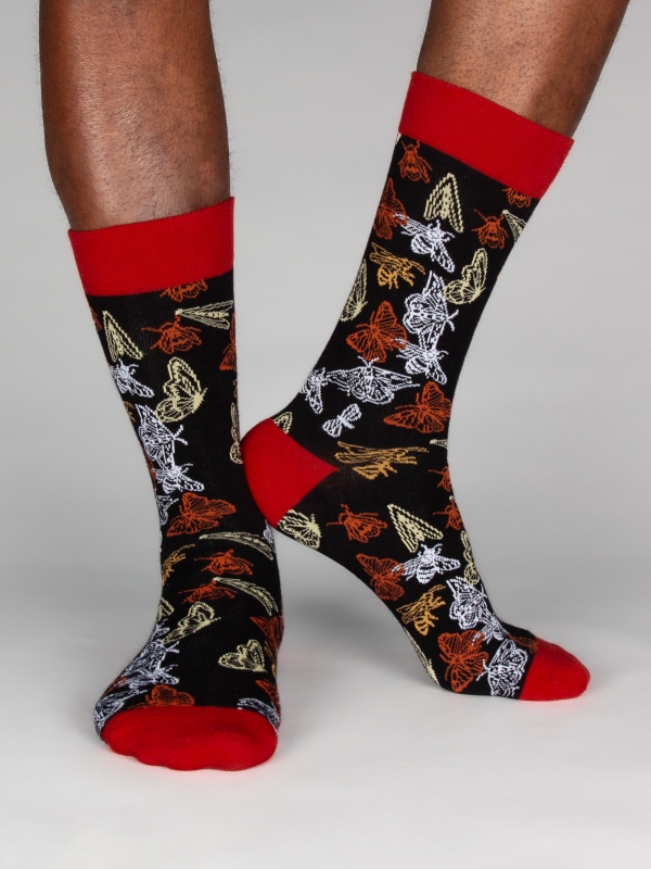 Embark on a whimsical journey with these socks, where butterflies and insects weave a story of natural wonder. Each pair flutters with intricate designs, turning your steps into a vibrant parade of color and charm. Under black trousers during the week, or a colourful chino at the weekend, you’ll love the discreet originality of this pattern and the comfort of its cotton.The model wears a size 42-46.