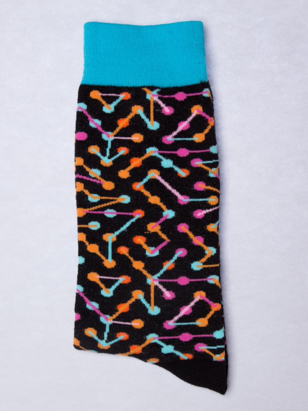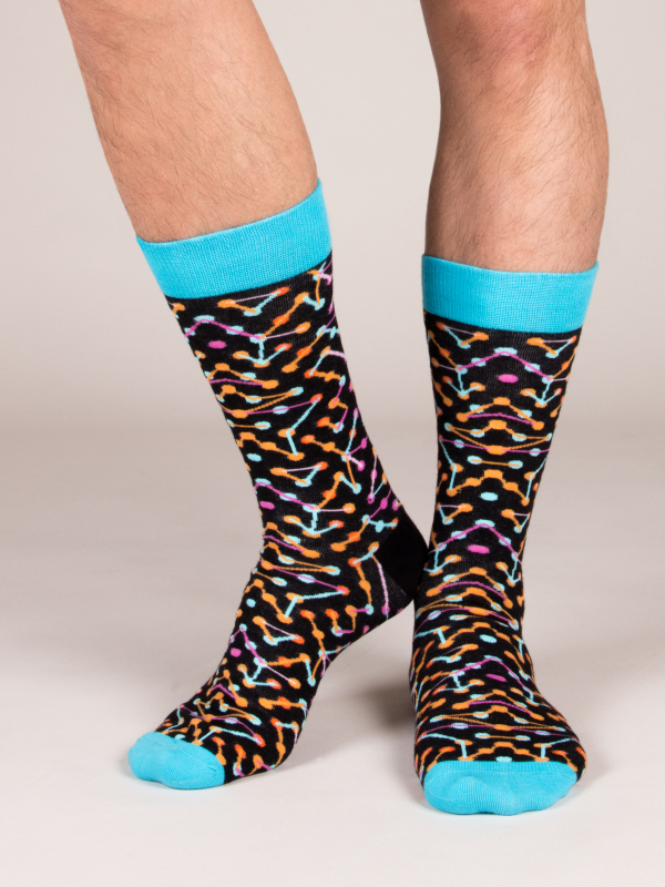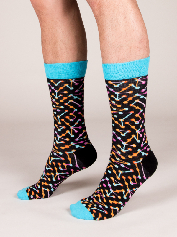 Link your love for fashion and color with these fluorescent links pattern socks, and be ready to shine all night! Wear it with black jeans to make the colors pop out even more.