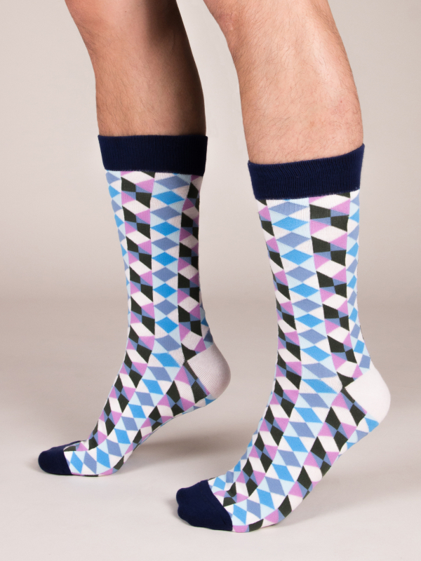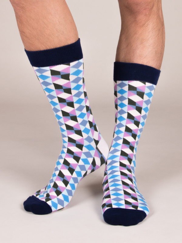 Finish your outfit with a hypnotic touch with these kaleidoscopic patterned socks. The colours will easily match all your outfits, especially jeans. Choose a classic light blue shirt to highlight the tones of this original accessory.