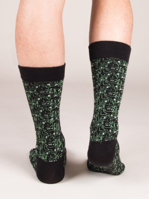 Technology lover? Integrate this passion into your style in complete discretion with these motherboard socks. Combine them with an all-black total look at a slightly rolled up pants or jeans for a prominent and polished look.