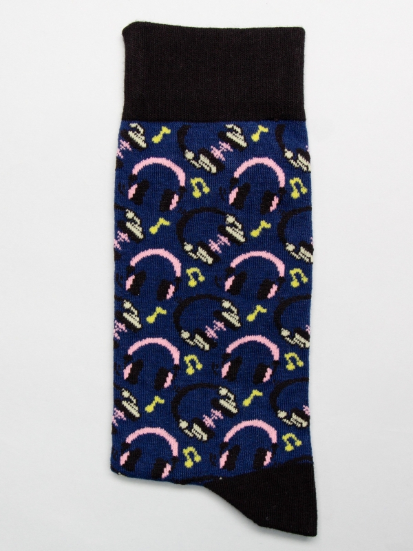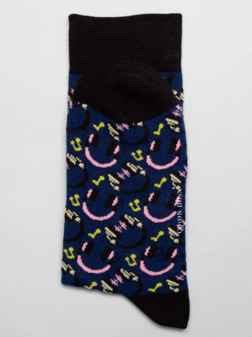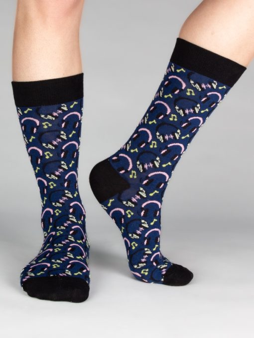 These socks, adorned with a melodious music pattern, turn every step into a symphony. Perfect for music lovers, they blend comfort with a style that keeps you in tune throughout the day. Choose a light grey pair of chinos for a nice outfit.The model wears a size 38-41.