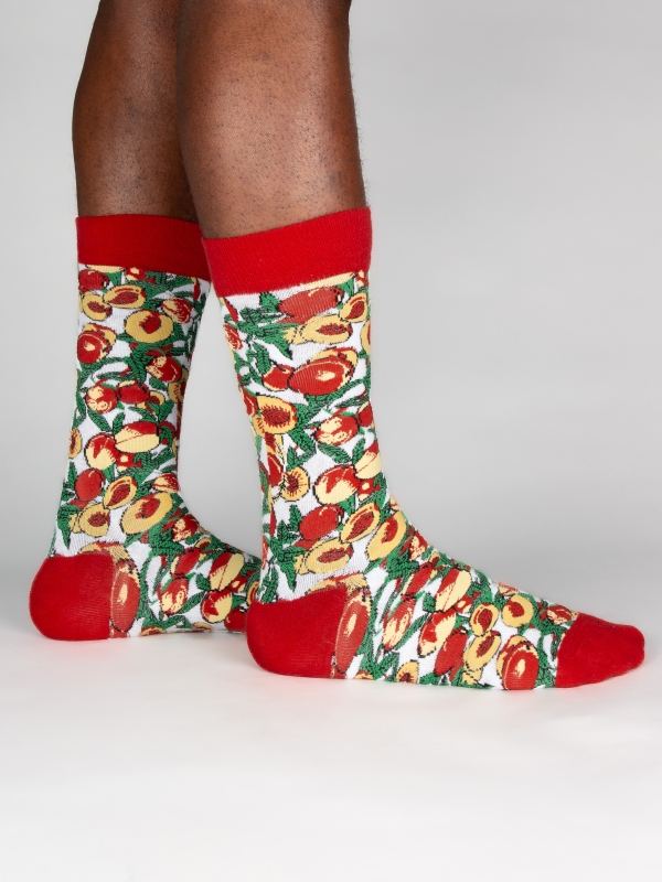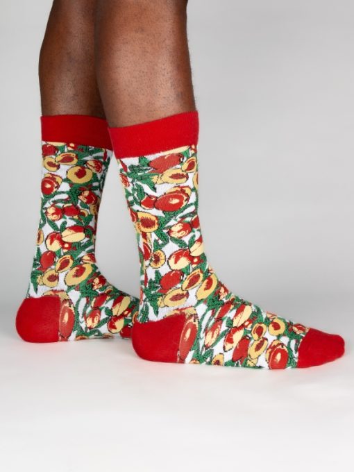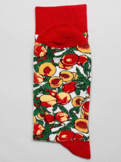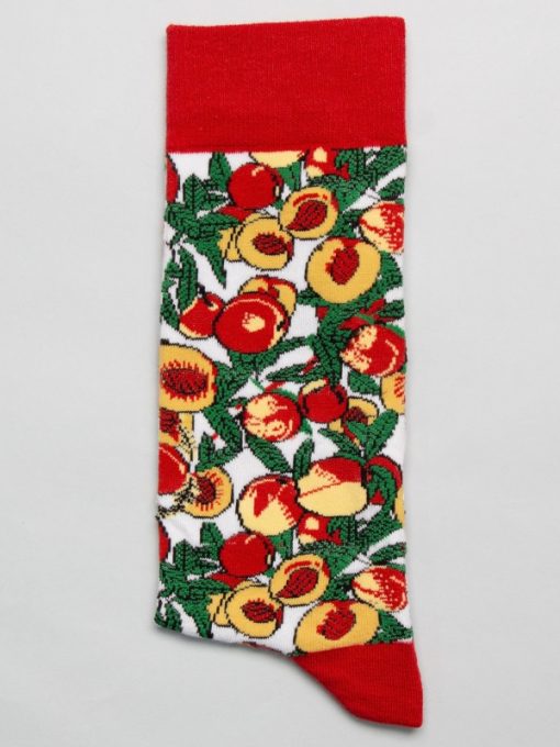 Welcome the crisp autumn days with these inviting peach printed socks. Crafted from 80% cotton, they offer exceptional comfort and warmth. The rich blend of orange and red accents against a soft beige base creates a look that’s both chic and seasonally appropriate. Perfect for those cooler transitional days, these socks will keep you cozy and stylish.The model wears a size 42-46.