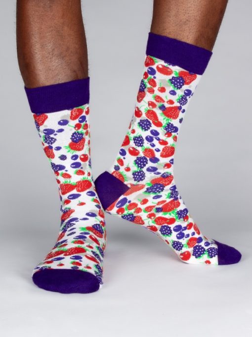 Immerse yourself in a vibrant garden of style with these socks adorned in a red berries pattern. Each pair bursts with a juicy splash of color, turning your everyday steps into a delightful dance of fresh, fruity flair.The model wears a size 42-46.