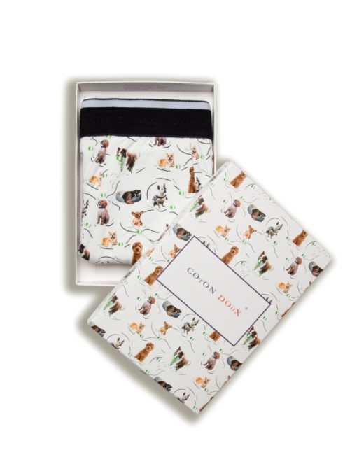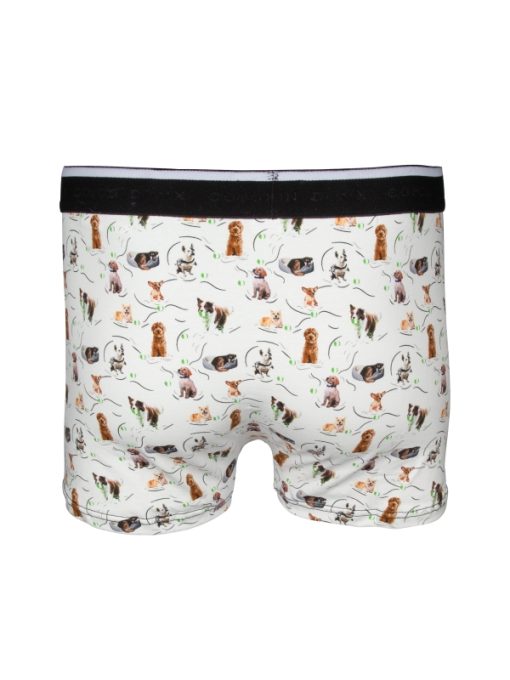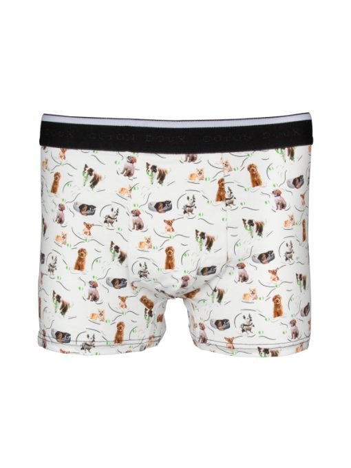 Crafted from a cotton-elastane blend with flat lock seams and a black elasticated logo waistband, these trunks offer ultimate comfort while showcasing a playful dog print for a touch of fun in your essentials.