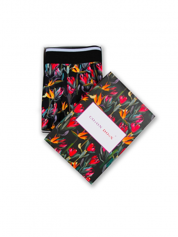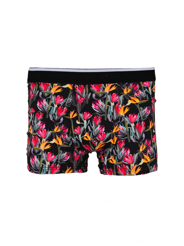 These flowers print trunks are crafted from cotton and a touch of elastane and features a branded waistband and flat lock seams. It means 100% comfy and all day long wearable as a second skin. The bright colorful flowers intertwine with the dark background will follow you through the day without ever fading.