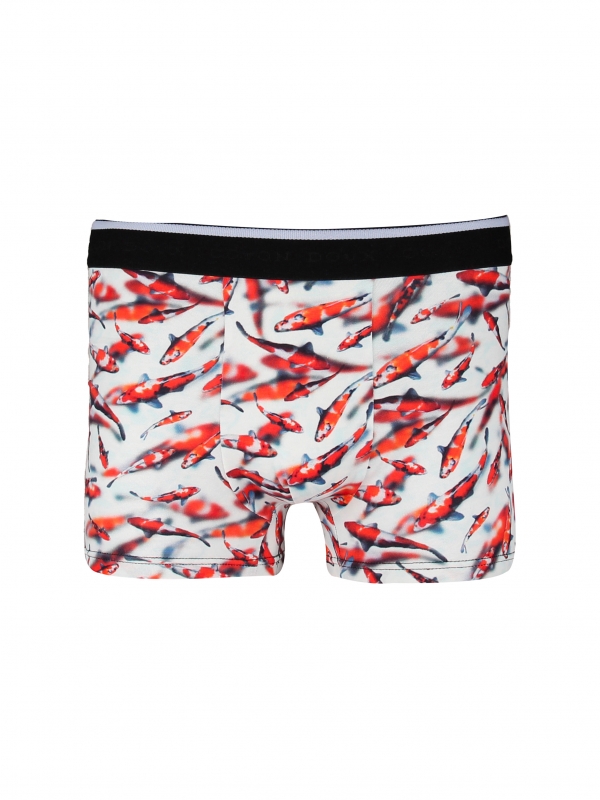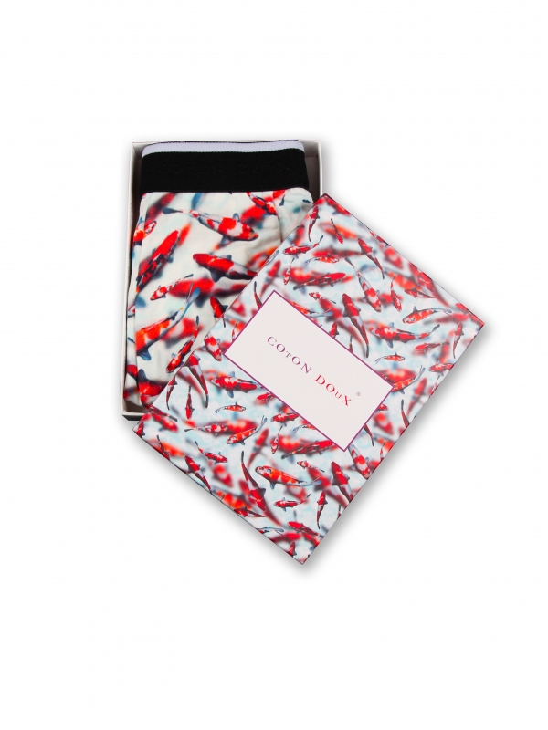Our Japanese koifish trunks are crafted with soft cotton and a hint of elastane. Shaped for a comfy fit, it features an elasticated logo waistband with an all-over same koifish print in water background. Don’t have to “fish for compliments” because you know that this underwear is a right choice.