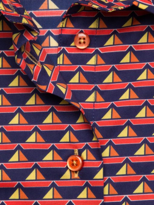 Thanks to the classic collar and double-button cuffs, this fitted shirt is an instant must-have for any origami enthusiasts. Let the pattern and colors speak for themselves and stand out against a pair of navy blue trousers, and watch your friends bend over backwards trying to find this shirt for themselves!