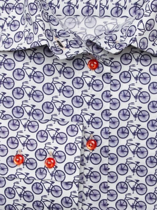 It’s time to get some fresh air and go for a long bike ride in the sun. Don’t forget to wear your bikes print shirt to match your favourite activity! Let yourself go and forget the daily worries thanks to its classic collar and double button cuffs that will allow you to enjoy your Sunday walks. Stay stylish by pairing this slim fit shirt with navy blue shorts and a pair of white low top sneakers. Your turn for the Tour de France!