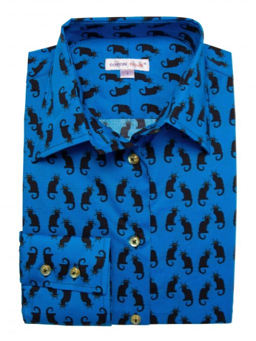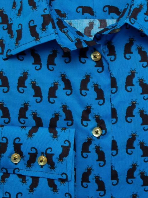 There’s no reason you shouldn’t wear these black cats, they’ll bring you good luck in terms of style! Matched with black pegged pants under a jacket in the same tone and with black varnished derbies, this curious print will give you an elegance touch whether you’re strolling through the day or dashing off into the night. Last but not least: a classic collar, double-button cuffs and a slim fit. Everyone his own style, you’ve got yours!