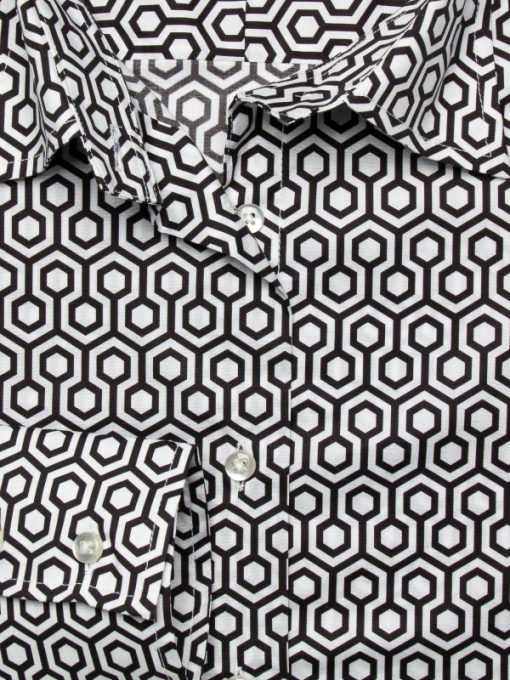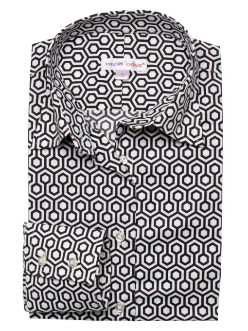 Elevate your wardrobe with our Geometry Print shirt, where striking shapes and intricate patterns transform classic design into wearable art. The dynamic geometric print exudes a sense of order and sophistication.With a classic collar and double-button cuffs adding timeless elegance, and a slim fit that offers tailored silhouette, this shirt pairs seamlessly with tailored trousers and loafers for a sharp appearance. Embrace the intersection of style with this piece.