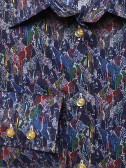 Do you love safaris? Your dream just came true with this giraffe print women’s fitted shirt that’s about to transport you to Africa without you even realizing it. Soak up the style by incorporating the same accessories as our giraffes with its classic collar and double button cuffs that accessorize under a colorful vest. Also, enjoy the slim fit that will make you look – very – slender!