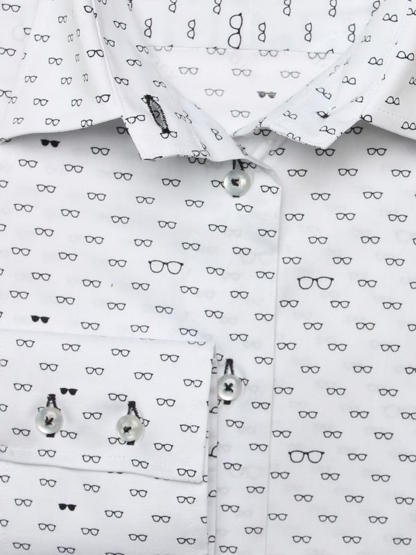 No more vision problems with this glasses print shirt, which will give you a 360° view on your style. It is strongly advised to match its slim fit with black slim pants and a thin belt to mark the silhouette. Not to be missed also, its classic collar and its double button cuffs to finalize a simple, effective and visible look for all.