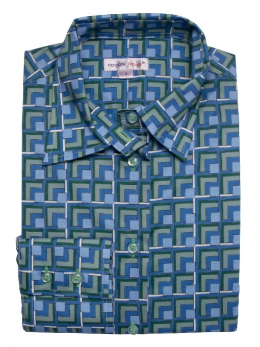 A flared jeans, a leather belt and heeled boots… what could be missing? Probably this shirt with green and blue squares print for a seventies look! But make no mistake, you’ll be modern thanks to its classic collar, slim fit and neat double-button cuffs. A denim jacket could be used… or not, it’s up to you to choose the right angle!
