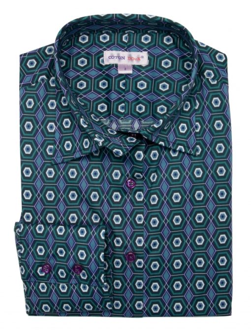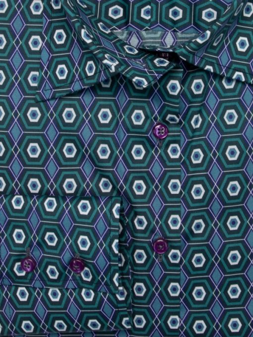 Unleash your sharp sense of style with this captivating printed shirt adorned with a mesmerizing hexagon print. With its classic collar, double-button cuffs and slim fit, you’ll be the definition of casual elegance. Pair it with your favorite jeans – light, gray or raw – for a look that’s as sharp as elegant. Whether you’re heading to the office or out for an evening with friends, this is a wardrobe essential.