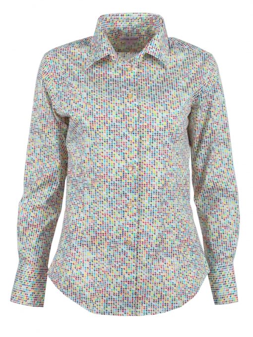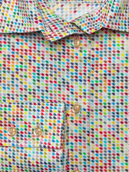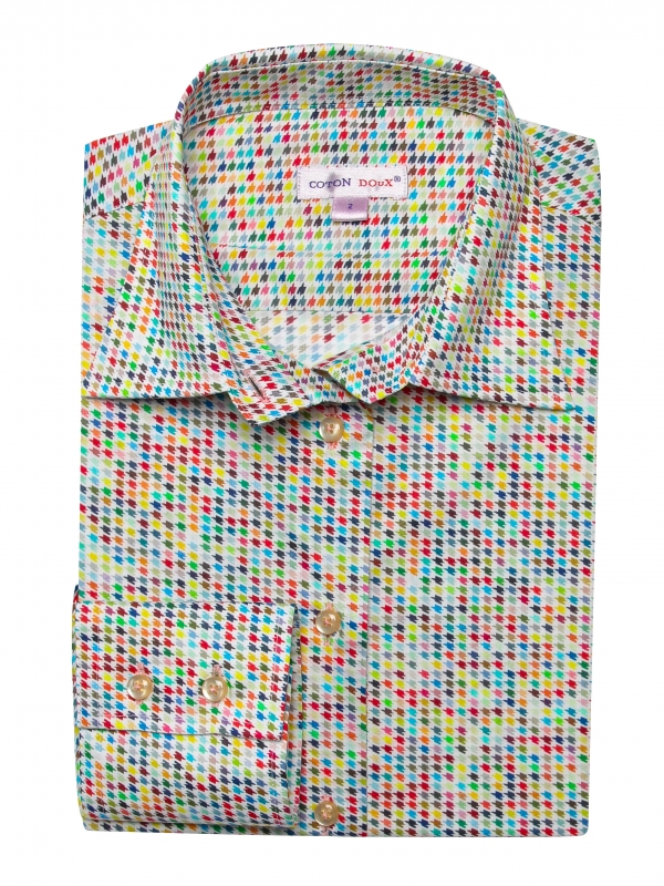Vintage and modernity can totally go together! The proof is in this shirt with a multicolored houndstooth print. Its graphic design will make you the most original person and then the most chic thanks to its classic collar and its double button cuffs. You can always highlight your colors and your slim fit with a pastel yellow flared skirt or raw flare jeans.