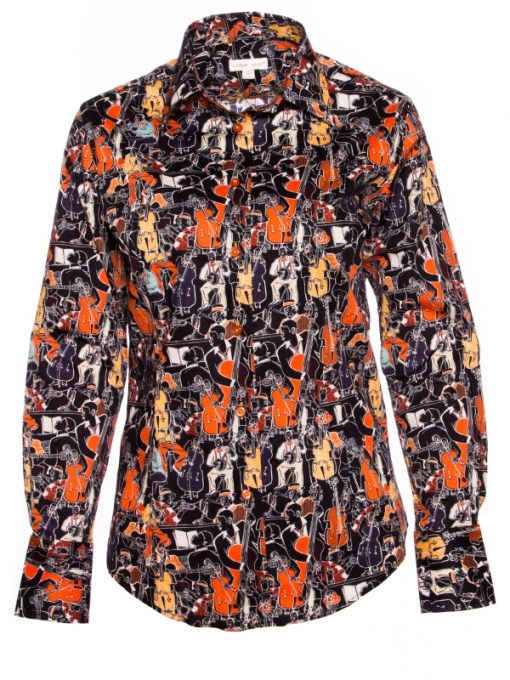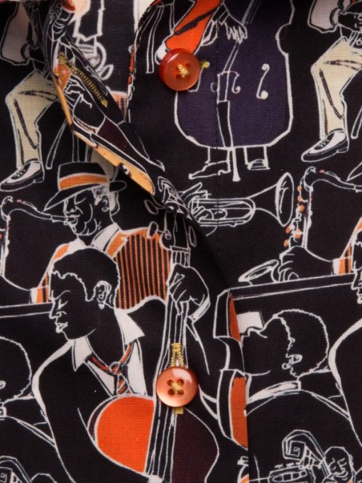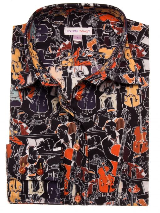 Immerse yourself in the rhythm of style with our Jazz Print shirt, where dynamic patterns capture the essence of musical artistry. Each design element harmonizes to create a captivating visual symphony. The classic collar and double-button cuffs add a touch of timeless elegance, while the slim fit ensures a contemporary, tailored look. Ideal for vibrant nights out, this shirt pairs seamlessly with dark jeans and brogues for a more relaxed, yet refined outfit.