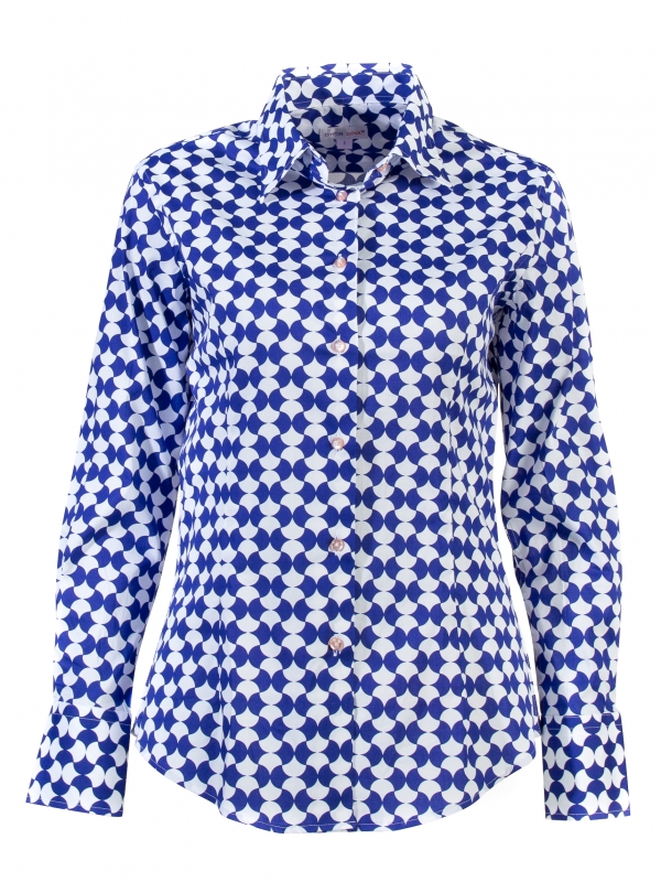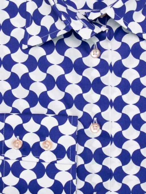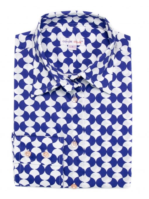 With a mix of white and navy blue poplin, this shirt with kaleidoscopic blue and white print is the must have for your wardrobe. Its design and unmistakable colour combination make it a future masterpiece. Another classic touch is the collar with its slim fit and double-button cuffs. Under a blue navy suit and with white sneakers to break the outfit, you’ll be a natural charmer!