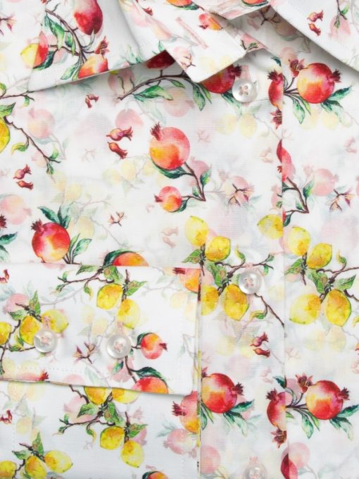 This shirt with pomegranate and lemon print exudes freshness! And you’ll find it hard to resist, as you’ll be seduced from the first moment you wear it. For a successful outfit, opt for a white chino and colourful canvas shoes while the sun shines. Its classic collar, slim fit and double-button cuffs will finish off the look…