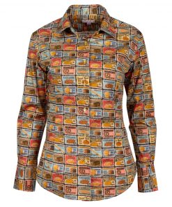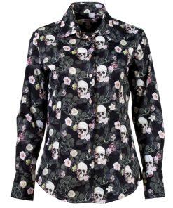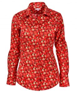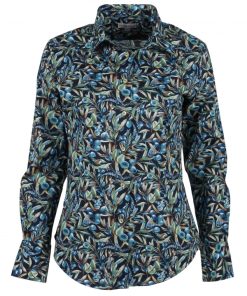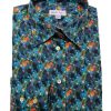 You love parrots? So this brightly colored parrot print blouse with a slim fit will take you to the rainforest. Its classic collar and double button cuffs will be chic to wear.