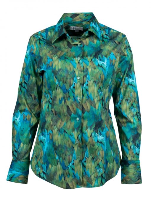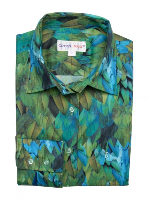 Coton Doux Women’s Fitted Shirt With Peacock Feather Print
