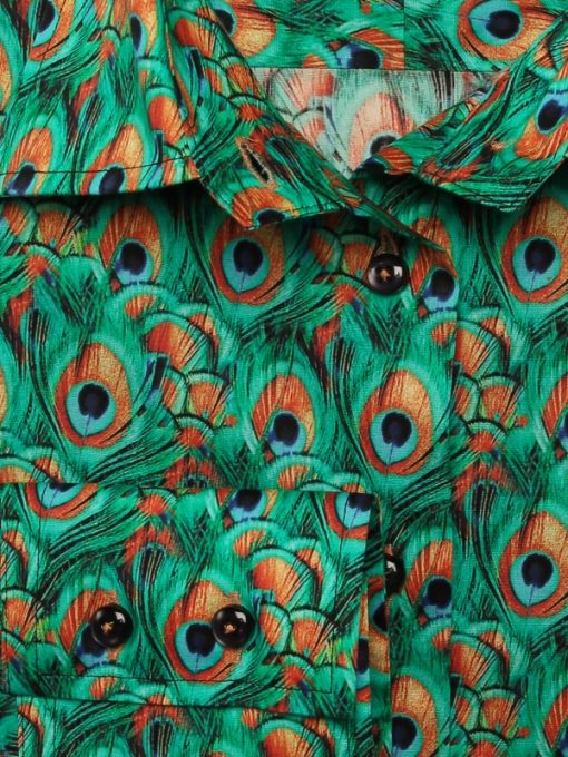 The peacock is considered to be a good luck charm but also a sign of true love. If you find a peacock feather on the ground, luck will smile on you so you might as well add this peacock feathers print shirt to your wardrobe. The beauty of the feathers will be enhanced by the classic collar and double button cuffs. To accentuate the slim fit of this shirt, pair it with a dark denim shorts and a pair of espadrilles in the colour of your choice. You’ll be ready for your courtship!
