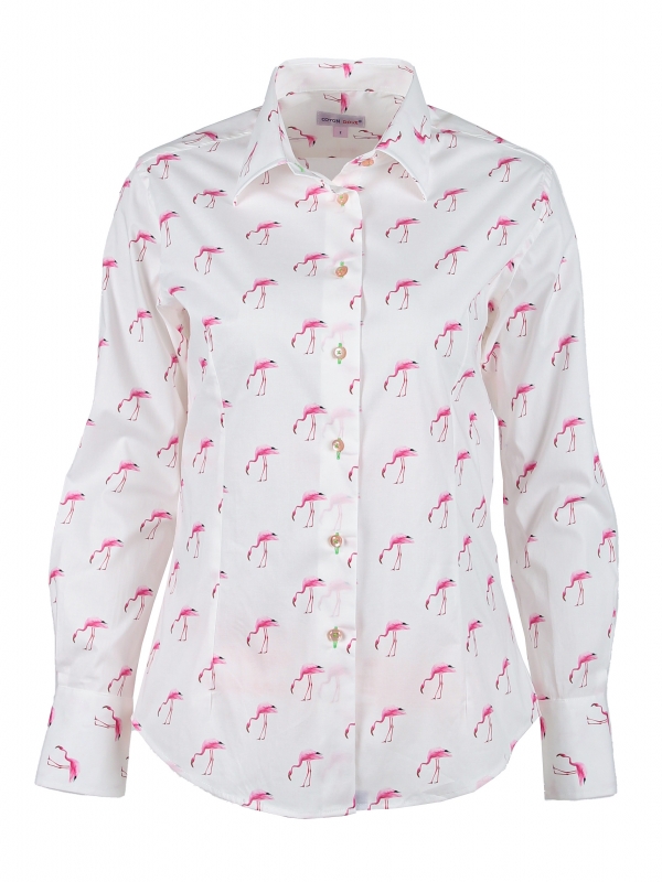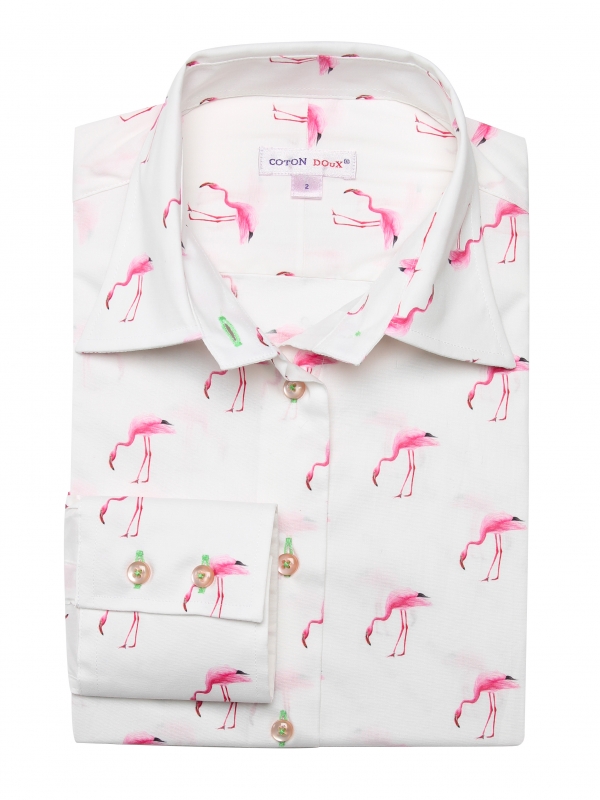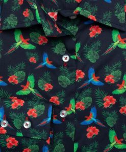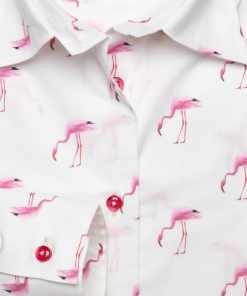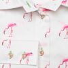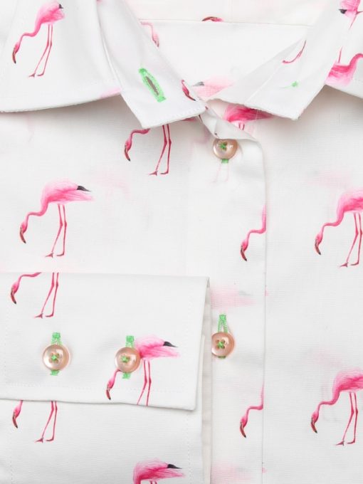 As the famous song goes, look at life in the pink by adding this pink flamingos shirt to your wardrobe. You don’t have to look any further and the classic collar and double button cuffs will brighten up your day. You can extend the look, even on a rainy day, by wearing a pair of powder pink cigarette trousers and white spartan shoes to highlight the slim fit.