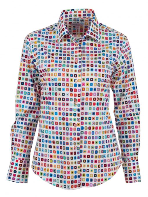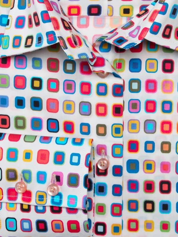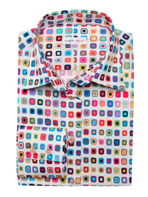 Nostalgic for the retro years? Feeling a little blue? You can remedy this with this retro cubes print shirt that will put a smile on your face. Immediately plunge into your childhood memories and your disco nights thanks to its classic collar and its double button cuffs. Don’t worry, you’ll stay modern and original by matching this slim fit shirt with high-waisted flared jeans and black platform shoes. Success is guaranteed!