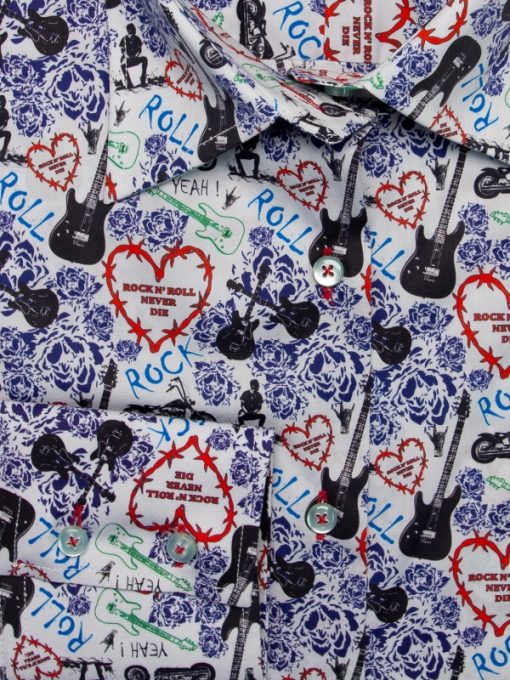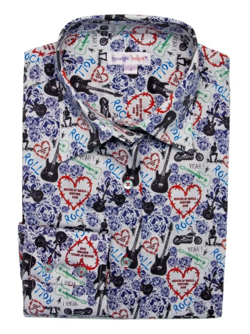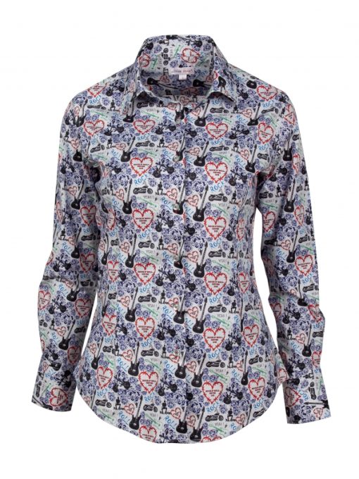 Coton Doux Women’s Fitted Shirt With Rock ‘n’ Roll Print