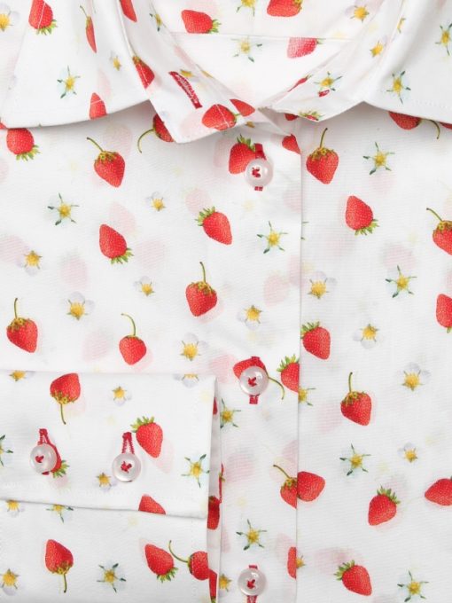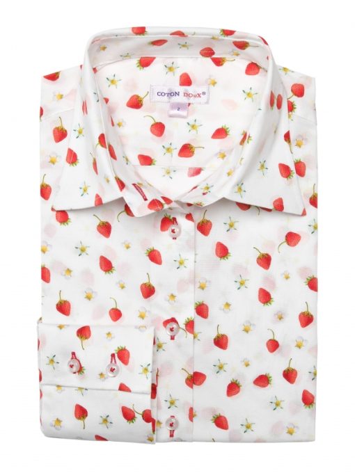 Whether you’re heading out on vacation or picking up a crop, opt for your strawberry print shirt that smells like summer! Its classic collar and double-button cuffs will slip under a denim jacket to keep things casual, and we won’t stop you from wearing its slim fit with red linen pants and white mules to emphasize your natural elegance. This season, bucolic will definitely rhyme with chic!
