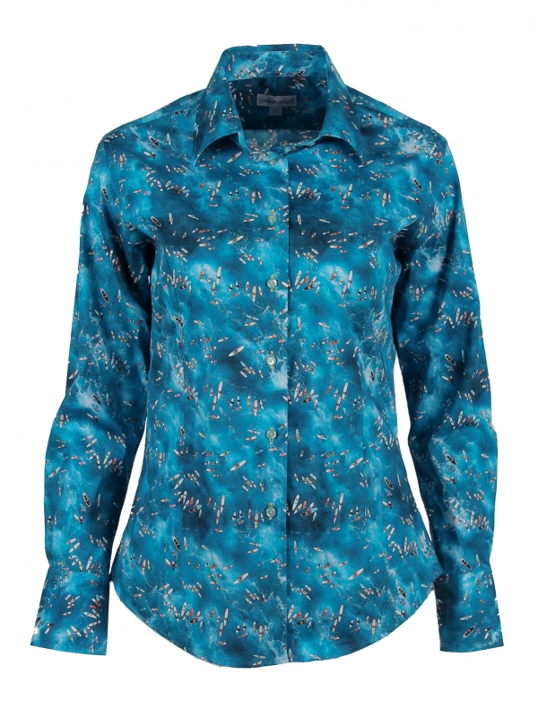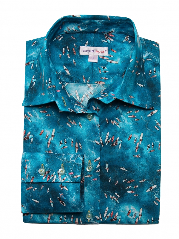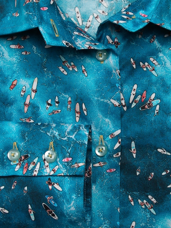 Ready to hit the wave? Bring out your wahine side with this surf print shirt that will give you the summer vibe! Its classic collar and double-button cuffs will keep you stable and structure your casual look. This slim fit shirt will pair beautifully with light denim shorts and white canvas sneakers. Board under the arm, here you are!