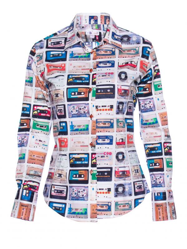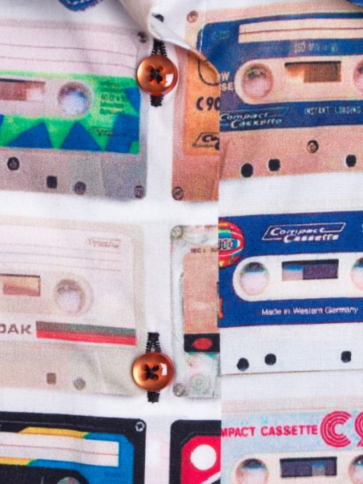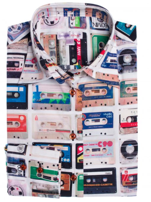 If your style is a bit classic, take a break choosing this fitted shirt with audio tape print! The classic collar and the double-button cuffs will sublimate the look and will stand out subtly worn under a black blazer. You can finish the outfit with black trousers and derbies for an urban chic style!