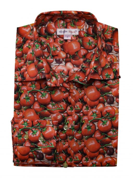 You will not lack singularity once slipped into this shirt with tomato print. But there’s no need to blush, on the contrary! The eyes will turn on your sense of originality and the powerful colors of these fruits. Proudly sport the classic collar and double button cuffs and wear this slim fit with a cream chino for contrast.