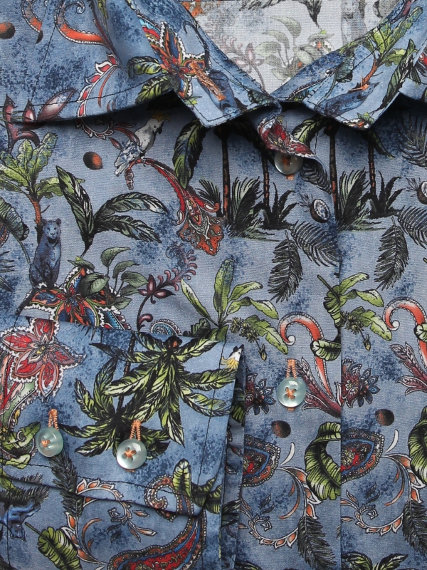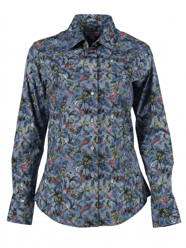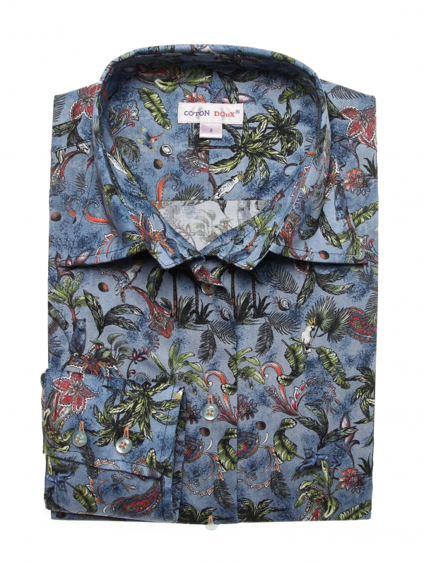 For a breath of fresh air, just wear this tropical jungle print women’s fitted shirt that will make you the green (or blue) lung of all eyes. Its classic collar and double button cuffs will give you a sense of elegance without preventing you from expressing your taste for originality. We invite you to wear this slim fit without moderation over light jeans or green safari pants. Blow, breathe, you are to fall for.