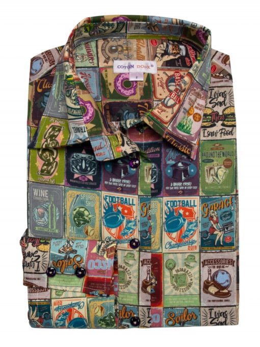 Doesn’t vintage celebrate a way to comeback to the old? You should think about it… One thing’s for sure, this slim-fit shirt with vintage poster will take you through the decades with its colours and illustrations. You’ll love wearing it with denim jeans or cream suit pants, depending on the moment and you can slip it elegantly over a classic collar and double-button cuffs under a cream suit jacket. Top it off with richelieu shoes and you’ve got the idea of the century!