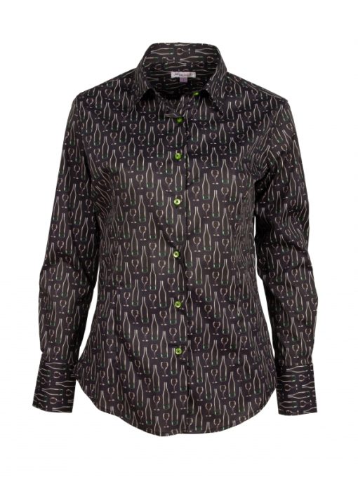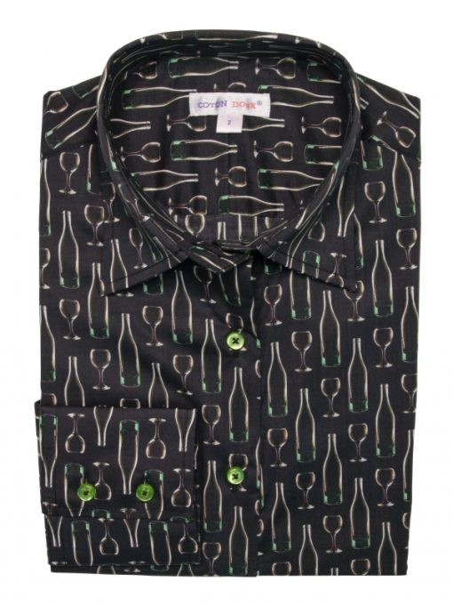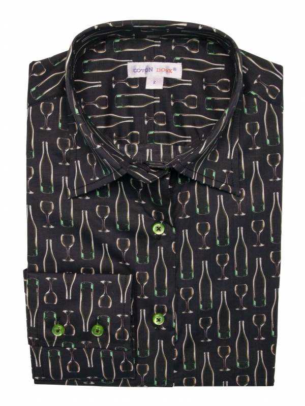 Enhance the “taste” of your style with our women’s fitted shirt with wine glass print. The classic collar and double-button cuffs add a touch of sophistication to the ensemble, creating a staple piece for all wine-lovers, but not only. Feel free to fill glasses and bottles to your heart’s content. Pair it with white pinstripe pants, and your look will be elevated to a whole new level! Here is what we call a great vintage.