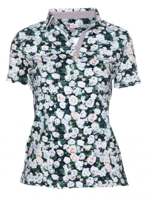 Give this this polo shirt like a bouquet of white roses, the illusion will be perfect. In addition to the precision of its print, you will appreciate its pretty fitted cut, its elegant triple buttons and its cotton piqué collar. For a cocktail with friends or during a bucolic walk, wear this model with beige chino pants or a white denim skirt and appreciate its comfort grace of its cotton jersey composition.