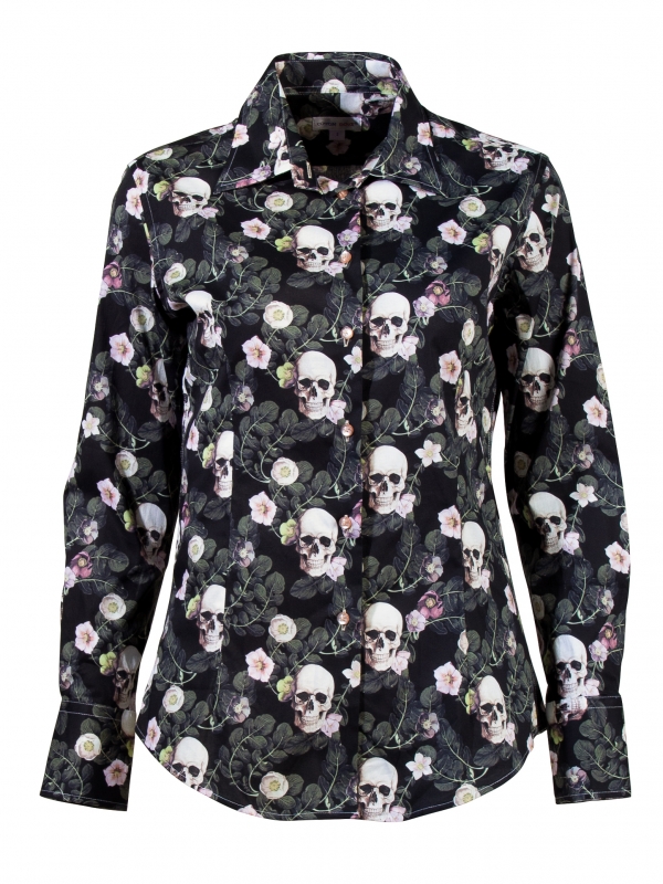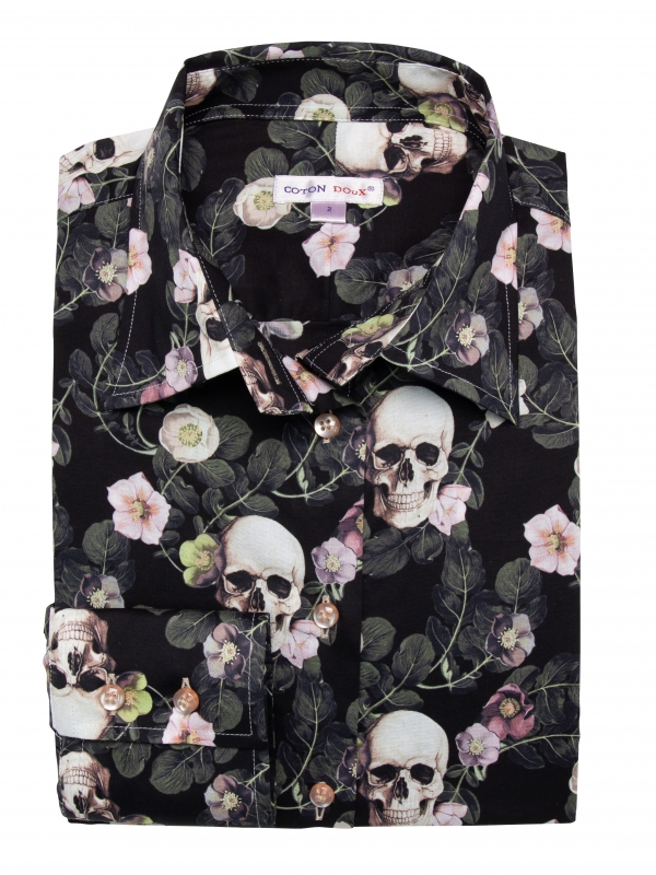 Coton Doux Women’s Shirt With Skull And Flower Print