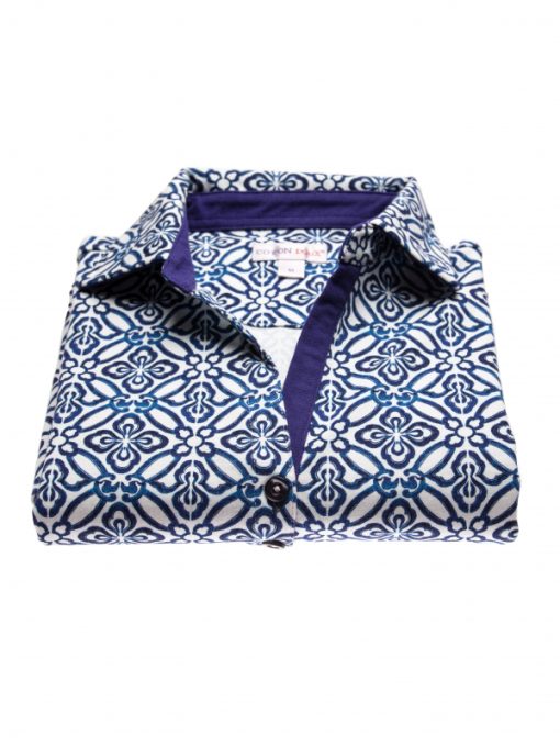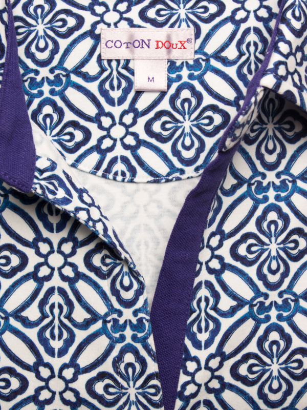 This polo shirt in Azulejos print will make you travel as soon as you wear it. It will brighten your outfit, especially worn with a denim skirt and a pair of sandals! You can rely on its cotton jersey composition to ensure comfort. For an even more stylish look, leave the piqué collar open thanks to its three-button placket. Casual and chic style guaranteed!