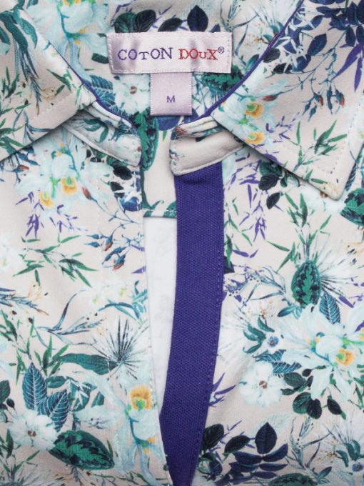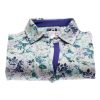 The pretty days are coming and the flowers are arriving with them! This slim fit polo shirt with a green and blue floral print will fit perfectly in your wardrobe. To match with a blue chino and a light green skirt. Made with jersey of cotton, piqué collar and three-button placket, this polo shirt will provide you comfort and elegance.