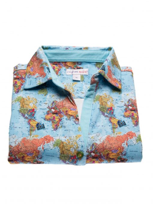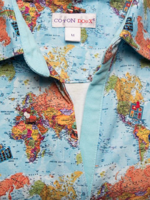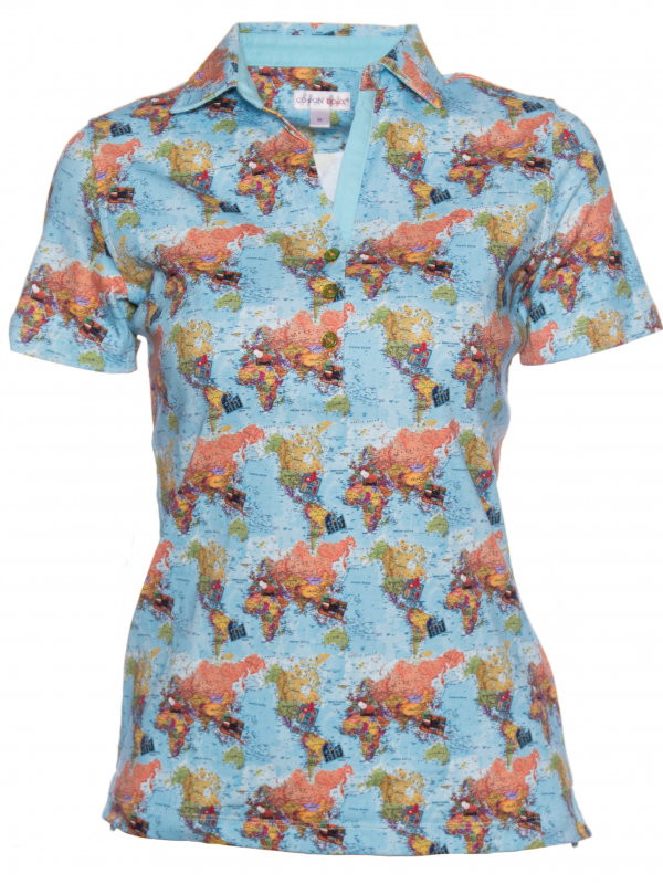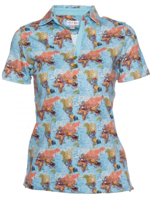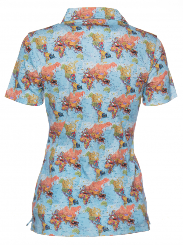 An adventuress at heart? You will no longer need a map to guide you with Women’s slim fit polo with map print. For a chic look, wear this mercerized cotton jersey polo shirt with a khaki skirt, its piqué collar will add a touch of elegance to your outfit. For a casual look, leave it open thanks to its three-button placket, add jean shorts and you’re ready for adventure!