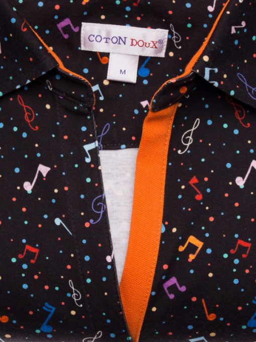 Has music always been the rhythm of your days? Be your own maestro by composing your outfit with this music print polo shirt. Composed of cotton jersey, with a cotton piqué collar and a three-button placket you will make people jealous. For a perfect harmony, combine it with black pinch pants or more summery, light denim shorts.